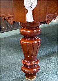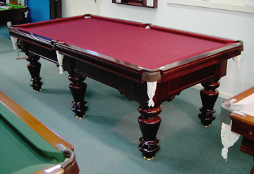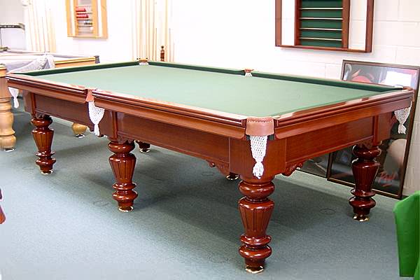 An increasingly popular choice, The Regency is a deep framed, solid hardwood table which offers a classical design with a corbelled frame and reeded turned leg. Competition Strachan Cloth in a range of colours with hand finished competition rubbers make this table one